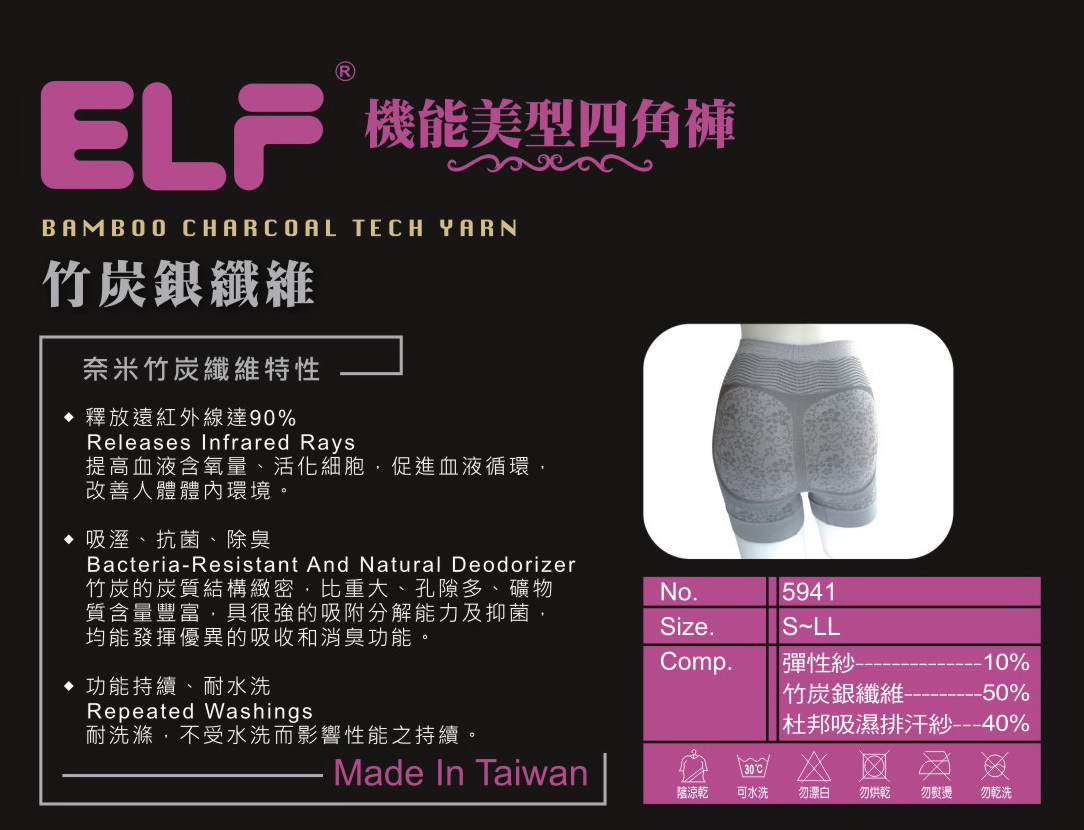 5941 竹炭 /銀纖維 機能美型女用四角褲 - 灰